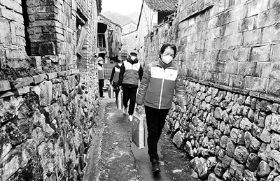 1月16日,宁波市奉化区红十字博爱志愿服务队的志愿者顶着寒风,来到大堰镇万三村,为残疾老人等人群送上米、油等慰问品,并祝愿他们度过一个快乐的春节。