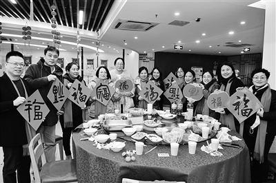 为了丰富坚守在一线工作的留杭过年职工精神文化生活,春节期间,杭州市拱墅区小河街道总工会以“更岁交子庆团圆、情暖小河过大年”为主题,开展了“写福字、送福气、送温暖、送文化”“饺子快手”比赛等一系列暖心活动,及时把职工“娘家人”的关心关怀和温暖送到职工们的手里,增加职工的凝聚力和向心力。图为“饺子快手”比赛后留影。