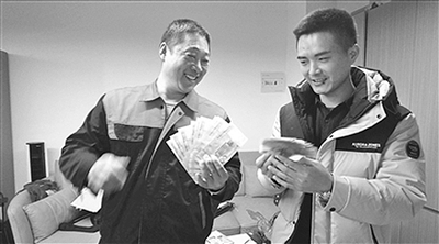 来自河南的陈黎明是一名维修工,已在鸿雁公司工作7年。今年回老家过年,他不仅给父母买了新衣服,还带着全家去饭店吃了一顿团圆饭。“今年回家比较晚,返岗又较早,我只能给父母洗头洗脚。”陈黎明报销发票后,拿到了2600元“行孝奖”。