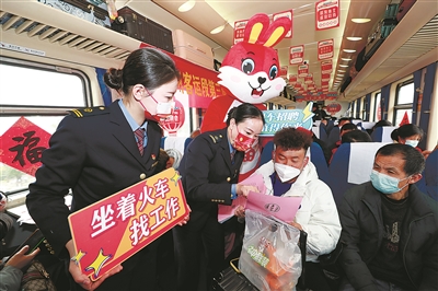 本报讯 记者李国峰报道 “岗位需要您,合适您就来”“欢迎来浙江,通过辛勤劳动实现自身发展”“共富路上齐奋斗,一起向未来……”昨日,在广州开往宁波的K210次绿皮火车上,10家优质企业、59个工种、近5000个招聘岗位虚位以待,伴随着铁路工作人员《早安·旅客》的歌声,一场专为来浙外来务工人员准备的招聘会伴随着春风如约而至。