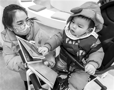 衢州智慧新城艺术中心D座的衢州市图书馆新馆新年正式开馆,许多市民纷纷前来读书、借书,以“精神充电”的方式迎接新年,一位妈妈带着才16个月大的宝宝,开始人生第一次阅读。