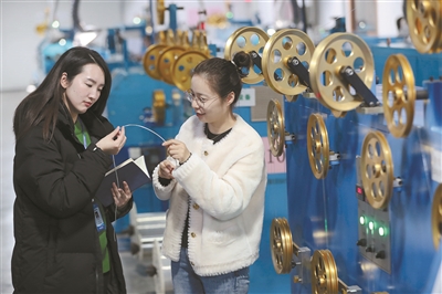 近日,在位于湖州市德清经济开发区的浙江兆龙互连科技股份有限公司生产车间,驻企服务专员在了解企业生产经营情况。连日来,德清县扎实开展“大走访大调研大服务大解题”活动,选派一批驻企服务专员“一对一”联系走访服务企业,全力保障生产要素,满足企业用电、用气等用能需求,优化营商环境,稳定企业预期,助力一季度工业经济“开门稳、开门红”。