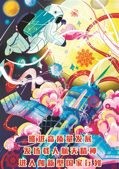 | 《航天筑梦》 甄梓琪 绘 |
