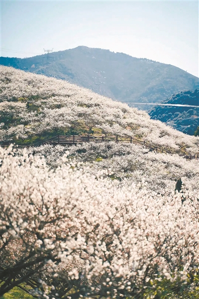据悉,吴兴西塞山旅游度假区(妙西镇)已连续五年举办“梅花节”活动,“梅花节”已成为西塞山旅游的一张金名片。作为此次活动的举办地,原乡小镇景区有着千亩梅林、万株梅花的“瀛洲梅园”,每年的2~3月,这里漫山遍野的白梅、红梅、绿萼梅等各色梅花竞相绽放,与山野相互映衬,美不胜收。梅园还建有长三角地区最长的梅林观光木栈道,总长约4.8公里,并设有12座观梅亭,串联起一条游客赏梅、闻香、观景、留影的绝佳路线。目前梅花正陆续进入盛放期。
