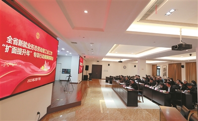 | 2月17日,全省新就业形态劳动者工会工作“扩面提升年”专项行动视频部署会召开。 记者邹伟锋 摄 |