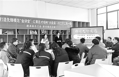 “开工第一课”是新市镇总工会推进产业工人队伍建设改革工作的活动品牌之一,致力于发挥劳模工匠、技术能手、“车间政委”的先锋引领作用,用心用情打造先锋模范“金讲堂”,将宣讲和培训课堂搬到实训基地、车间一线甚至食堂、宿舍,带动产业工人主动从“旁观者”转变为“参与者”,让他们有“说”的念头,有“做”的行动,以“小我”融入实干争先的“大我”中去。