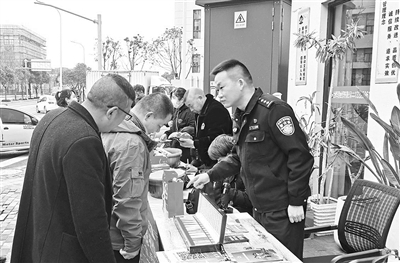 近日,台州市公安局椒江分局海门派出所民警会同当地移动公司工作人员、网格员一起,走进辖区慧谷科创园“摆摊”,向员工讲解防骗、防盗、防毒品以及交通安全、消防安全等知识。