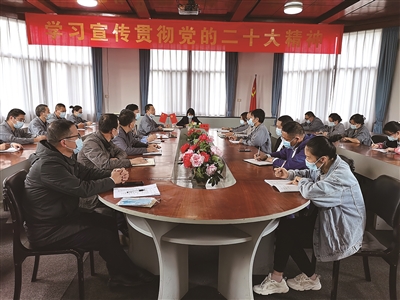 | 党的二十大代表王笔仙在企业宣讲党的二十大精神 |