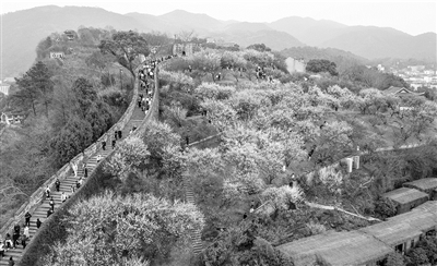 通讯员朱霄霄 记者潘仙德报道 位于临海市的台州府城始建于晋,是一座千年古城。2020年9月台州府城文化旅游区被评为首批浙江省职工疗休养基地。近日,古城墙下的数百株梅花竞相怒放,吸引了大批游客前来赏梅观景。