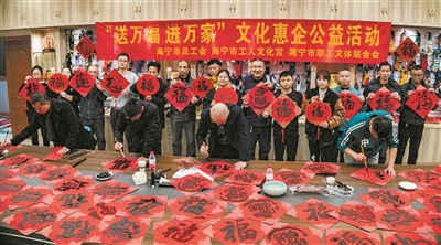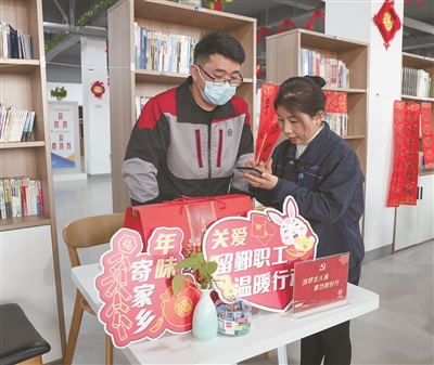 宁波市鄞州区总工会则举行“万福送亲人 年味寄家乡”关爱留鄞职工温暖活动,春节前邀请书法家、摄影师走进重点工程项目现场及企业一线,为留鄞职工写春联、送福字、拍摄年味写真,提前感受年味。“娘家人”还准备了“鄞州有礼”宁波特色礼包,鼓励工友们连同照片一起寄回老家,传递一份亲情。