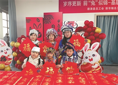2023年1月10~12日,德清县总工会、新市镇总工会联合开展进企业、进工地、进新业态开展“留岗送温暖 ‘工’爱在身边”活动,在企业食堂,与职工们一起包饺子、写春联、猜字谜,送福送好运;在谢家园安置房工地,“娘家人”准备了两桌热腾腾的年夜饭,陪工友们平平安安过大年;在骑手“工享家”,为骑手戴上了“新年红”围巾,送上米、油、春联、福字礼包等,让职工们其乐融融迎新春,来年铆足干劲加油干。