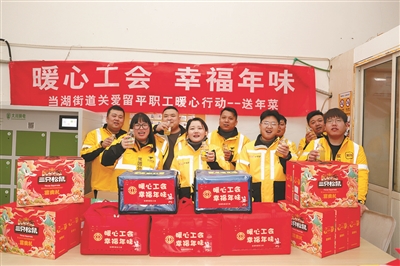 平湖市当湖街道总工会今年也开展了“留浙过年 暖在身边”关心关爱新就业形态劳动者暖心行动,推出“暖心工会 幸福年味送年菜”活动、“聚‘蜂’暖巢”志愿服务活动等,让坚守岗位的快递员、外卖员等感受到工会组织的关怀与温暖。