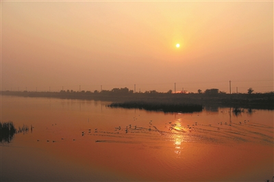 春风吹拂水面,泛起点点涟漪。在杭州临江江海湿地,杭州东部迎接第一缕阳光的地方,候鸟或飞过水面,或静静地在泥塘边玩耍,在阳光下享受美味的早餐。由于得天独厚的自然条件和区位优势,临江江海湿地是全球八大鸟类迁徙路线之一的东亚和澳大利亚线路上的重要节点,许多候鸟都会在春冬之交在此“安营扎寨”。即使在夏秋季节,依旧可以在这领略来自原生态的风光,感受到湿地的壮阔和美妙。