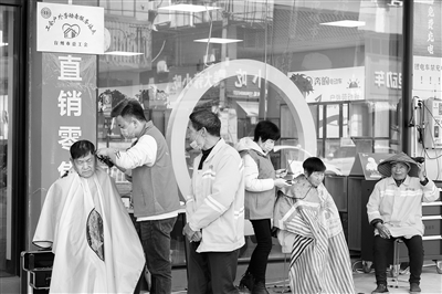 昨日,台州市路桥区金清镇总工会在工会爱心驿站里开展“情暖三八·爱心义剪”暨学雷锋月志愿服务活动。活动现场,理发师志愿者们拿出剪刀、梳子等美发工具,认真地为环卫工人等户外劳动者修剪发型。