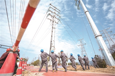 | 1月27日,在东方日升(义乌)新能源有限公司110千伏专线提升工程现场,国网义乌市供电公司员工正在有序施工,确保该项目顺利投产,保障企业节后复工复产“电力十足”。(陈姣姣 陈紫涵 摄) |