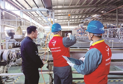 | 2月8日,国家电网浙江电力(义乌)红船共产党员服务队主动上门到华鸿控股集团有限公司检查用电设备,指导客户做好安全用电措施,为企业节后复工复产送上“安全电、放心电”。(宋荣宝 摄) |
