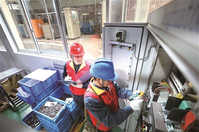 | 2月1日,国网浙江武义县供电公司员工在浙江尚厨家居科技股份有限公司帮客户检查电力设备的安全稳定用电状况。(徐若婷 摄) |