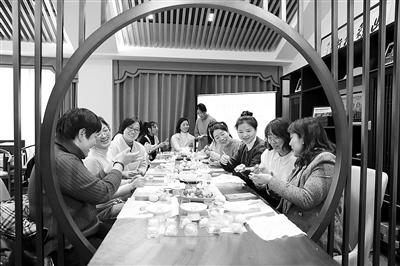近日,台州市路桥区横街镇的巾帼在学习茶果子制作。“三八”国际劳动妇女节到来之际,横街镇统战办和妇联开展“巾帼学艺”活动,组织妇女学习花艺、蛋糕制作、家政服务等技艺,扩大致富渠道。 通讯员蒋友青 摄