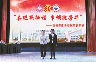 本报讯 记者邹伟锋摄影报道 昨日下午,由省建设建材工会主办、浙江建设职业技术学院工会承办的“奋进新征程 巾帼绽芳华——巾帼劳模进校园宣讲”活动举行。