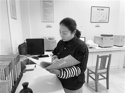 | 杨芳在查看入炉煤质碳检测报告。 |
