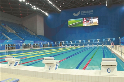 “水质越好折射越强,肉眼看到的池底就越浅,这水真是太清了。”大家走进杭州奥体中心游泳馆,看到泳池内的水清澈见底,呈现出明亮的湛蓝色,不由得发出感叹。