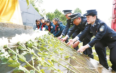 昨日,台州市路桥横街镇组织退役军人、民兵、公安民警以及少年儿童开展祭扫烈士墓活动,向在抗日战争中牺牲的陈安宝烈士敬献鲜花,以表深切缅怀。祭扫现场同时开展向国旗宣誓活动。