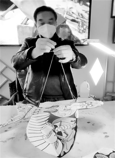“中国传统风筝的制作已有2000多年的历史,主要就是‘扎、糊、绘、放’四个步骤,从设计图纸、劈竹下料到扎制骨架、裱糊净边,都很讲究技巧。”程迪申从事传统风筝制作已有40多年,简单的风筝一天可以制作10多个,复杂的、创新的风筝起码要1个月,还要经过试飞,不断调试改良才能顺利“飞天”。