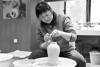 “一天十几个小时坐在这里,身上总会粘上泥土和颜料,双手也经常泡水,衣服肯定是没有干净的。”吴如琴边说边用小刀在刚拉好的陶坯上进行修坯,“陶艺作品在拉坯、雕刻、烧制等过程中都有可能会出现瑕疵,但只要作品有人喜欢、愿意收藏,心里就蛮开心的。这点脏算什么呢?”