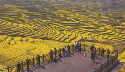 连日来,地处上虞岭南乡的国家4A级旅游景区——覆卮山景区,千年梯田上油菜花怒放,犹如金黄的云梯,沿着整个覆卮山麓盘桓层叠,恍若人间仙境,加上万年石浪、百年古村落,吸引诸多市民和游客慕名而至。在丁宅乡上宅村芋艿湾自然村,漫山遍野的桃花烂漫绽放枝头,犹如翩翩起舞的彩蝶,与远处的蓝天、村庄融为一体,勾勒出如诗如画的美景。除了丁宅桃花基地,这两天,章镇樱花谷景区、谢塘醉美梨园等同样游客如织。