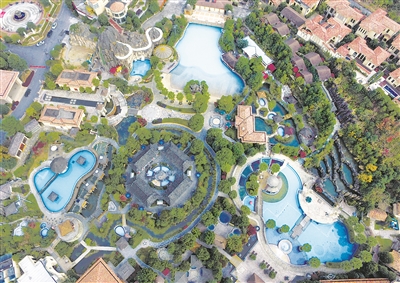 清水湾·沁温泉为地中海建筑风格,100余个泡池星罗棋布,每一个都蕴涵着深厚的文化内涵与异域风情。