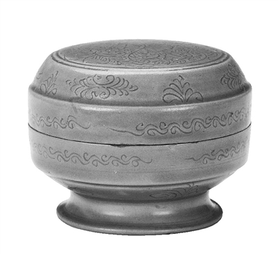 | 五代越窑青瓷刻划花卉纹盖盒 |