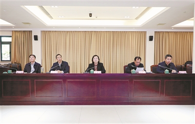 | 4月7日上午,副省长王文序到省总工会调研公共服务“七优享”工程“弱有众扶”相关工作,并主持相关单位进行座谈交流。记者李国峰 摄 |