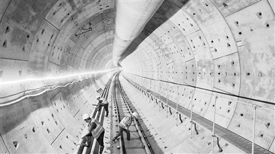 4月10日,位于湖州市德清县武康街道的杭德市域铁路建设现场,中铁八局的工人在隧道里施工作业。在现场,5台“挖掘神器”——大型智能盾构机不间断作业,已累计掘进长度3800多米。