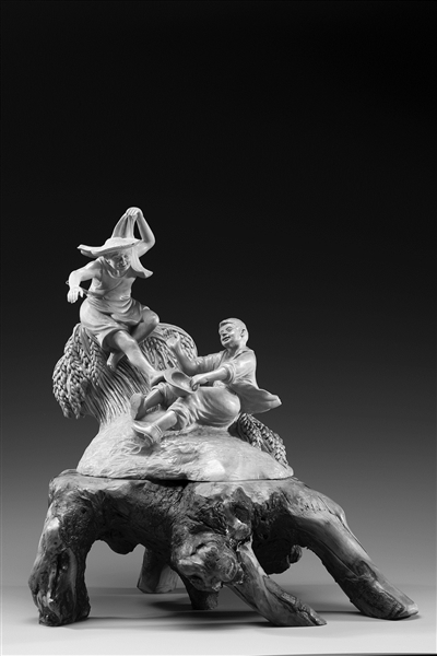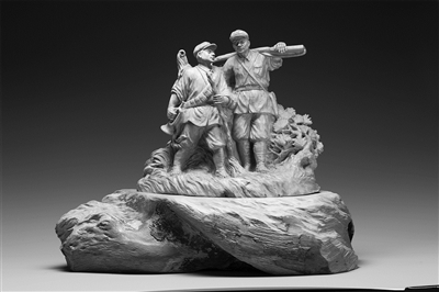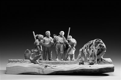 虞金顺:作为中国非物质文化遗产项目代表性传承人,又当选过浙江省第十三次党代会代表,我感受到了荣誉和责任,觉得应该承担起为黄杨木雕传承和创新的重任。所以想一定要把中国最好的元素、最好的故事和情节创作出来,去打动广大观众,让他们通过我的作品去感受这个伟大的时代,共同为实现“中国梦”而努力奋斗,这是我的初衷。还有一个原因,我创作过《攻关》《接班》《丰收舞》《大寨人》等当代题材作品,而且均被浙江省选送到美国、日本等国展出或收藏,有胜任创作这些作品的自信和底气。