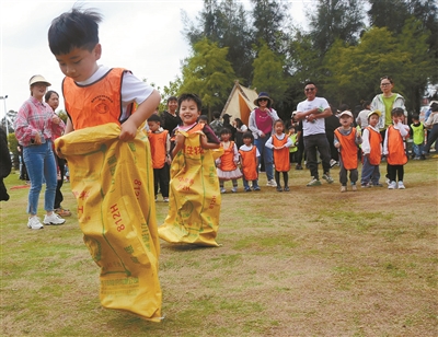 图为小朋友们正在进行“可爱袋鼠跳”项目比赛。
