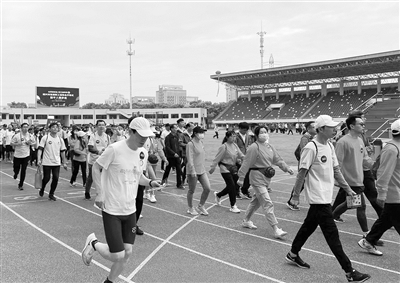 本报讯 记者李国峰摄影报道 近日,绍兴越城区体育中心的田径场上人声鼎沸,人潮涌动,伴随清脆的发令声,选手如离弦之箭冲出起点,如潮涌般奋勇争先、你追我赶……绍兴首届职工运动会开幕式暨千人健步走活动启动仪式举行,拉开了绍兴首届职工运动会的帷幕。
