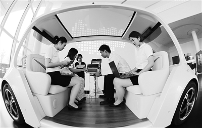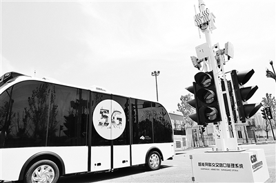 | 无人驾驶公交正在测试。 谢尚国 摄 |