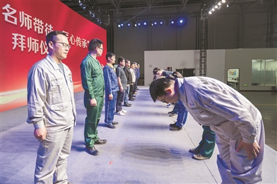 在活动现场举行了平湖市级“名师带徒·匠心传承”拜师仪式。拜师仪式结束后,韩其芳、陈良杰和浙江金蓝领、浙江青年工匠、浙江伴宇实业股份有限公司技术部制版科一科科长朱钱蕾为在场的平湖技师学院师生代表进行宣讲,讲述了他们在平凡岗位上创造的不平凡业绩,现场多次响起了热烈的掌声。