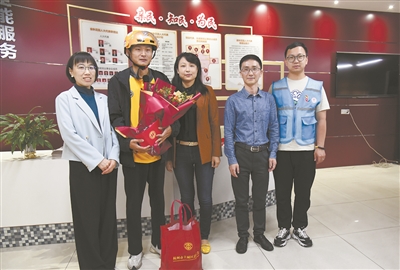 5月6日,杭州市上城区总工会副主席蔡肇颖前往看望,为他的善举点赞,并送上“娘家人”的关怀。