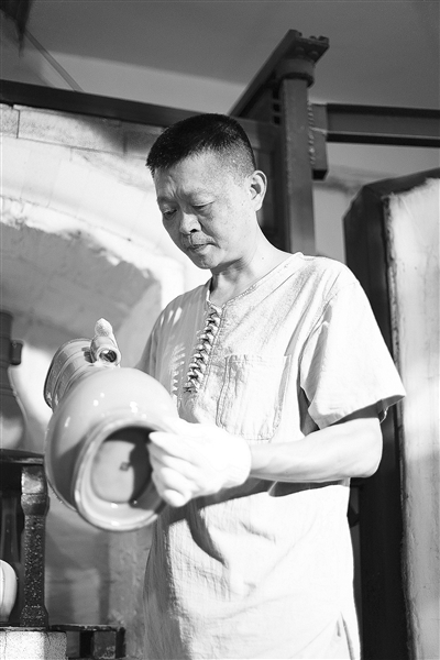 “我知道难,但没想到有这么难!”铁胎是龙泉青瓷烧制难度最高的种类。徐建新说,为了掌握铁胎青瓷的烧制技艺,他一窑一窑接着烧,在一次又一次的失败中摸索前进,先后烧掉10吨瓷土,才算啃下了这块硬骨头。