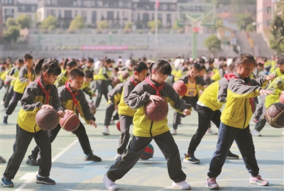 班级联赛、团体障碍运球接力赛 、个人一分钟定点投篮赛……近日,杭州市余杭区凤凰小学以“跃动篮球 喜迎亚运”为主题的篮球文化节活动落下帷幕。据悉,篮球是凤凰小学的一大特色活动。近一个月来,学校开展了丰富多彩的篮球赛,让孩子们在体育锻炼中享受乐趣、增强体质、健全人格、锤炼意志,展现凤凰学子的朝气蓬勃。图为闭幕式上的篮球操表演。