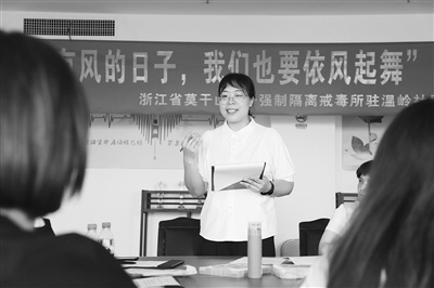 日前,在浙江省“一级乡镇禁毒办”——温岭市松门镇禁毒办的心理辅导室,来自省莫干山女子强制隔离戒毒所四大队的副大队长、国家二级心理咨询师、中级社会工作师丁晓雅正在给戒毒人员作“给心灵减压,为生活助力”心理团辅。帮助当地出所戒毒人员、社区康复人员和社区戒毒人员更好融入社区、回归家庭,打通戒毒工作的“最后一公里”。