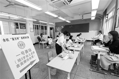 5月20日,以“迎亚运 强技能 促共富”为主题的杭州市余杭区“荣方杯”保育员技能大赛,在闲林职业高级中学举行。来自全区12个镇街幼儿园工会和3家企业工会遴选的共200余名保育员参加了理论知识竞赛,并在3~5岁幼儿安全健康管理、生活照料、早期学习支持、综合知识等四个方面进行操作技能比拼,进一步提升保育员的专业技能和业务素质整体水平。