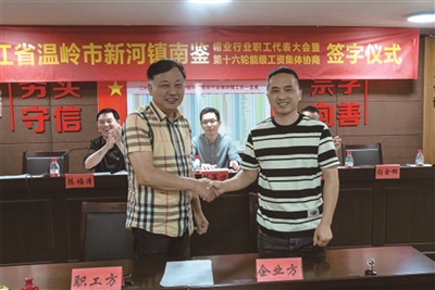 当天,出席这次会议的温岭市总工会党组副书记、副主席陈军方表示,新河镇南鉴帽业行业第十六轮能级工资集体协商协议的签订,标志着新河镇协调劳动关系三方通力合作,达到了三方共赢的效果。新工价出台,将更加激励职工的工作热情,使劳动关系更趋稳定协调,为企业发展创造条件,助力共同富裕。