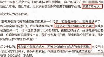最近,一小学家委会就借毕业策划了“天价毕业照”,杭州萧山区一小学某位家长分享称,家委会策划全班去影楼拍毕业照,每人收费338元,一个班收费高达15000元。