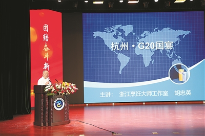 | 胡忠英在讲述G20国宴设计中的匠心故事。 |