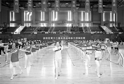 6月10日,以“余你迎亚运·杭向新征程”为主题的杭州市余杭区第十二届全民运动会工间操比赛在闲林体艺馆举行。来自全区的33支代表队、共600余名职工参加比赛,以运动方式传递“快乐工作、健康生活”的理念,掀起“全民参与、全民支持、全民传播、全民共享”的迎亚运热潮。