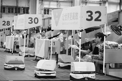 日前,在湖州市德清县乾元镇第一产业智慧物流园区快鱼服饰有限公司华东物流中心,880台分拣“小黄人”机器人来回穿梭,精准快速完成各类服饰配送,积极备战“618”年中购物节。物流中心通过智慧分拣提高效率,日缩减员工拣货步数达2万步,出货时间可提前3~4小时。通讯员倪立芳、姜睿 摄