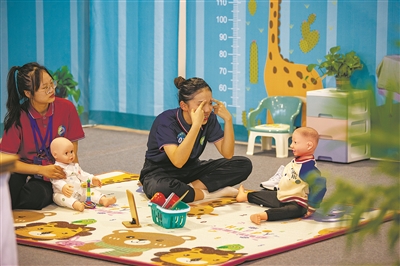 | 浙江技能大赛参赛选手在进行育婴员项目比赛。 胡肖飞 摄 |