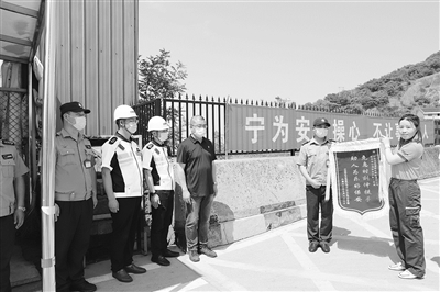 | 邱海青(右一)向帮助过她的保安师傅送上锦旗。 |